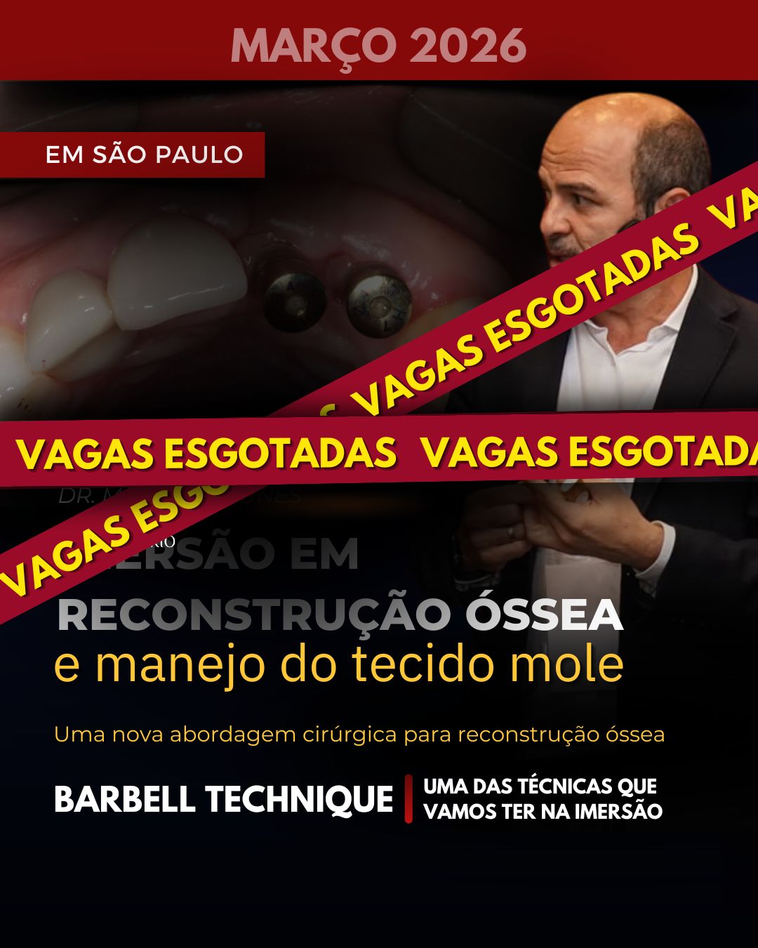 3 dias intensivos com o Dr. Marcelo Nunes e equipe – referência em reconstrução óssea e manejo de tecidos moles.